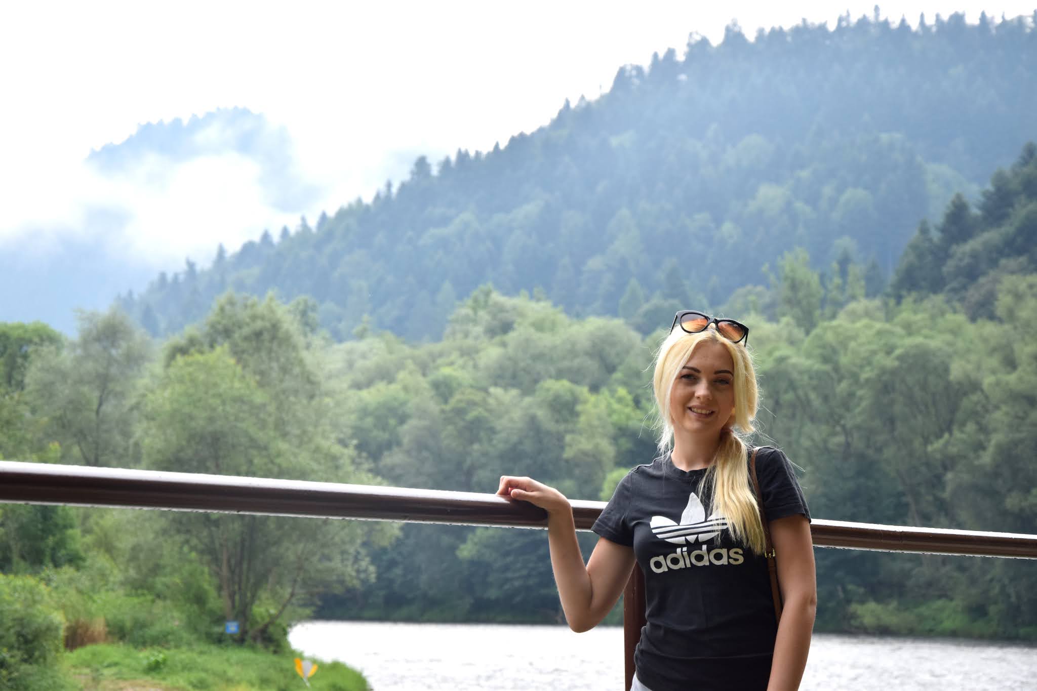 Najedzeni i szczęśliwi udaliśmy się w poszukiwaniu wypożyczalni rowerów. Takowa znaleźliśmy zaraz obok baru. Jej nazwa to "Trzy Korony". Wielkim plusem był fakt, że można było zostawić rower w Sromowcach, tam, gdzie zaparkowaliśmy nasze autko. Trafił mi się śliczny biało-różowy rower z koszyczkiem, typowo górski z przerzutkami. Cena wypożyczenia do 3H wynosiła 25 PLN. Jeżeli chcielibyście wynająć sobie rower na cały dzień, cena ta wyniosłaby 35 PLN. Ruszaliśmy w kierunku Czerwonego Klasztoru. Droga po stronie polskiej była bardzo dobra, asfaltowa. Przejeżdżając przez granicę ze Słowacją, zaczęły się kamienie. Wspomnę, że warto uważać na trasie, ponieważ występuje wspólny szlak dla pieszych jak i rowerzystów. Niemniej jednak krajobraz który mijaliśmy, pozostanie w naszej pamięci na długo. Trasa jest bardzo łatwa, liczy sobie ona 10 km w jedną stronę. Po drodze zaliczymy tylko jedno większe wzniesienie, gdzie można się lekko zmęczyć. Tak to droga jest prosta i bardzo przyjemna. Przy Czerwonym Klasztorze nie siedzieliśmy zbyt długo. Usiedliśmy nad brzegiem Dunajca, gdzie wiele osób się kąpało i odpoczywało. Pogoda była naprawdę słoneczna, więc czerpaliśmy z tego samą przyjemność.